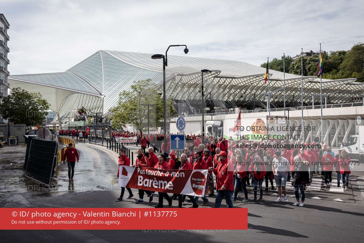 Liège, Belgique. 14 Mai 2019. Environ 5000 personnes ont participé à cette manifestation sociale nationale visant à protester contre la baisse du pouvoir d'achat. De nombreux représentants du syndicat FGTB étaient présents. Un préavis de grève avait été déposé.