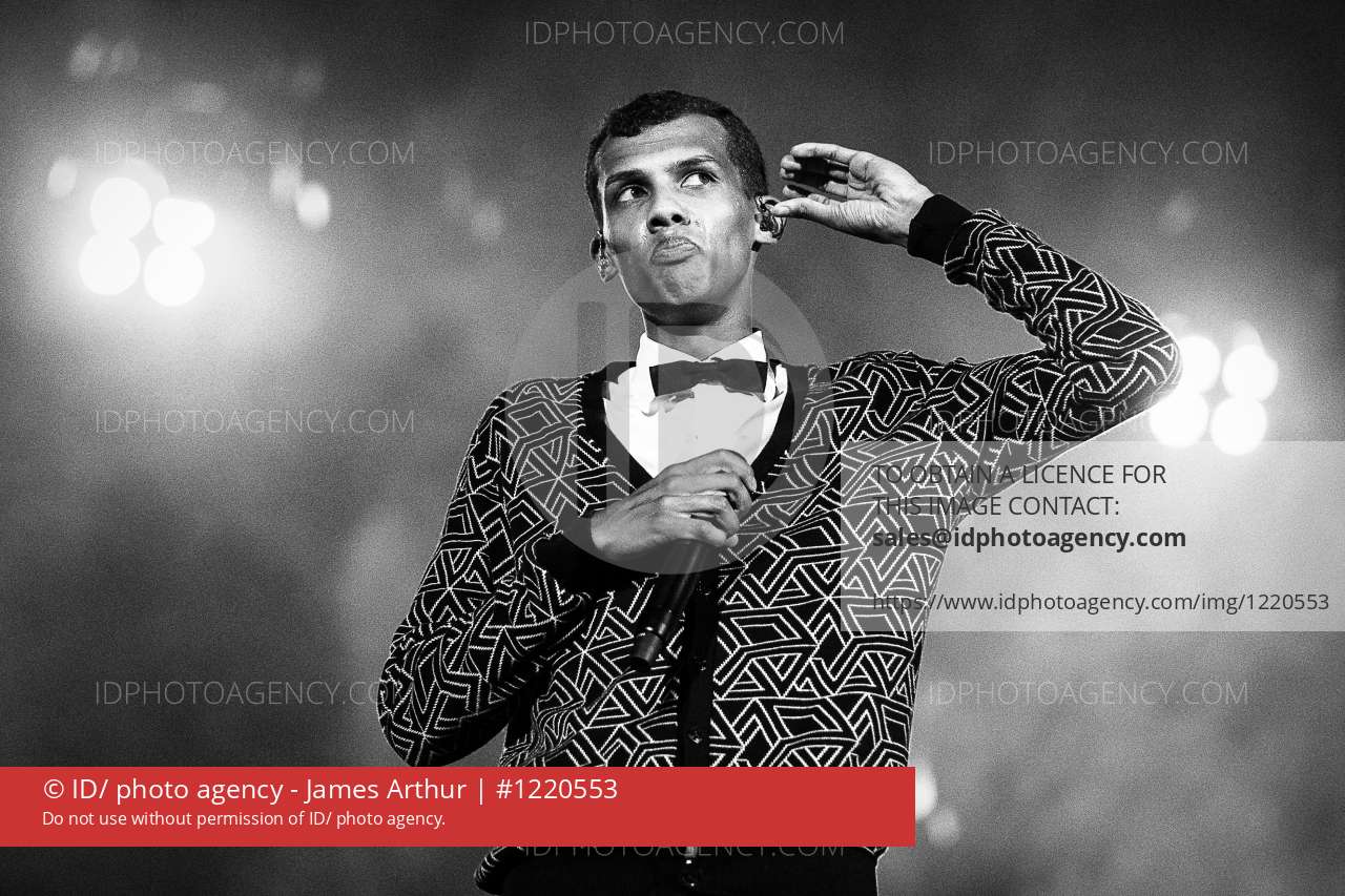 Belgian artist Stromae at the closing concert of Rock Werchter. He was the first French-speaking headliner in the history of the festival, which celebrated its 40th anniversary that year.