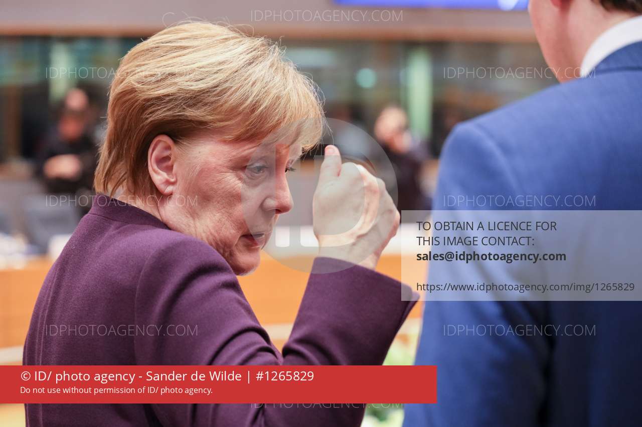 CHancellor Angela Merkel of Germany (left) and Sebastian Kurz of Austria (right) at the confererence room for an EU summit at the European Council building in Brussels, Thursday, Feb. 20, 2020. After almost two years of sparring, the EU will be discussing the bloc's budget to work out Europe's spending plans for the next seven years