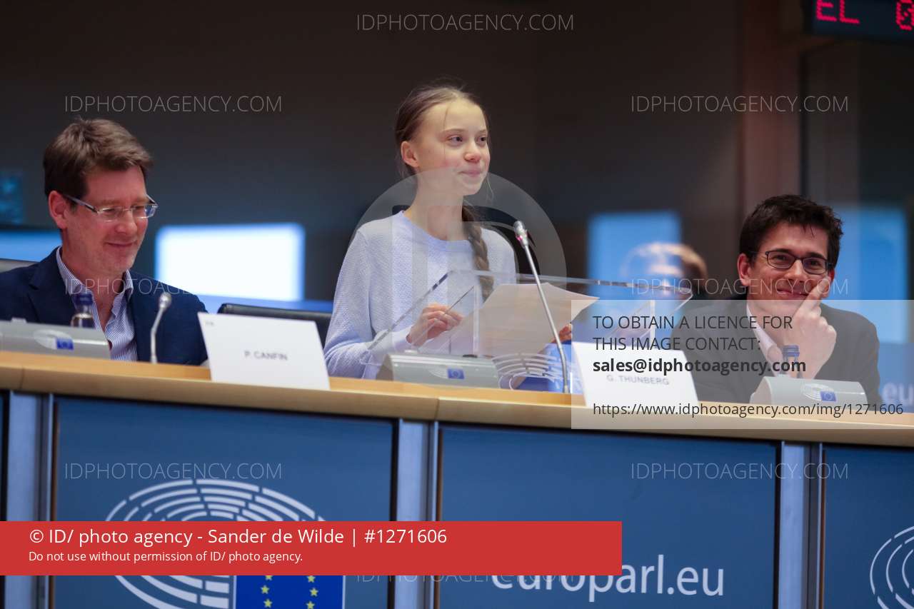 Brussels, Belgium 4 March 2020 Swedish Climate Activist Greta Thunberg holds a speech at the European Parliament in Brussels for a meeting with the the parlementarians.