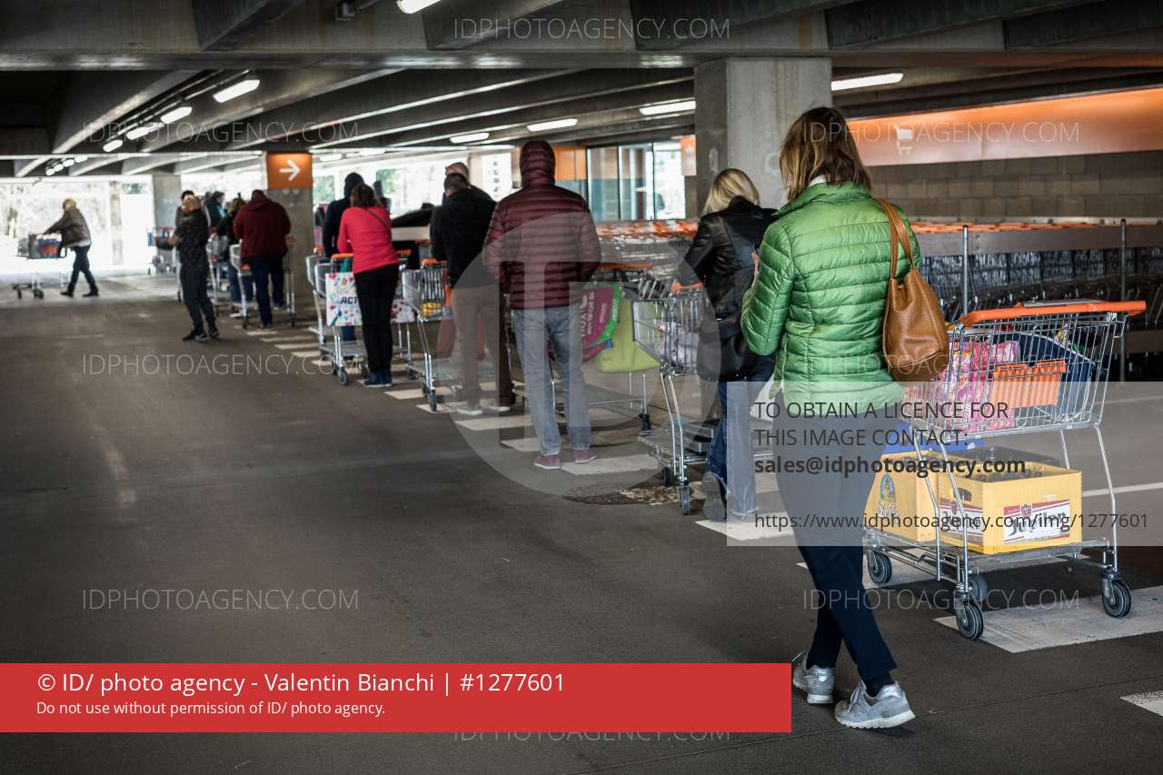 Liege, Belgium. March 17, 2020. Despite media announcements, Belgian citizens are rushing to the shops to buy food. Lines are starting to form outside the shops.â¨â¨Liège, Belgique. 17 Mars 2020. Malgré les annonces médiatiques, les citoyens belges se ruent dans les magasins pour acheter des denrées alimentaires. Des files commencent à se former à lâextérieur des magasins.