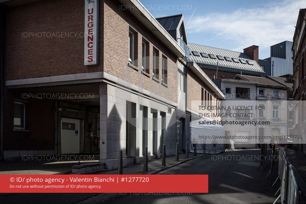 Liège, Belgium. 17 March 2020. The hospital of the CHR St-Joseph in Liège has set up a Red Cross tent in order to adapt its reception procedure to emergencies and thus cope with the outbreak of the Covid19 Coronavirus.â¨â¨â¨Liège, Belgique. 17 Mars 2020. Lâhôpital du CHR St-Joseph à Liège a installé une tente de la Croix-Rouge tafin dâadapter sa procédure dâaccueil aux urgences et ainsi faire face à lâépidémie de Coronavirus Covid19.