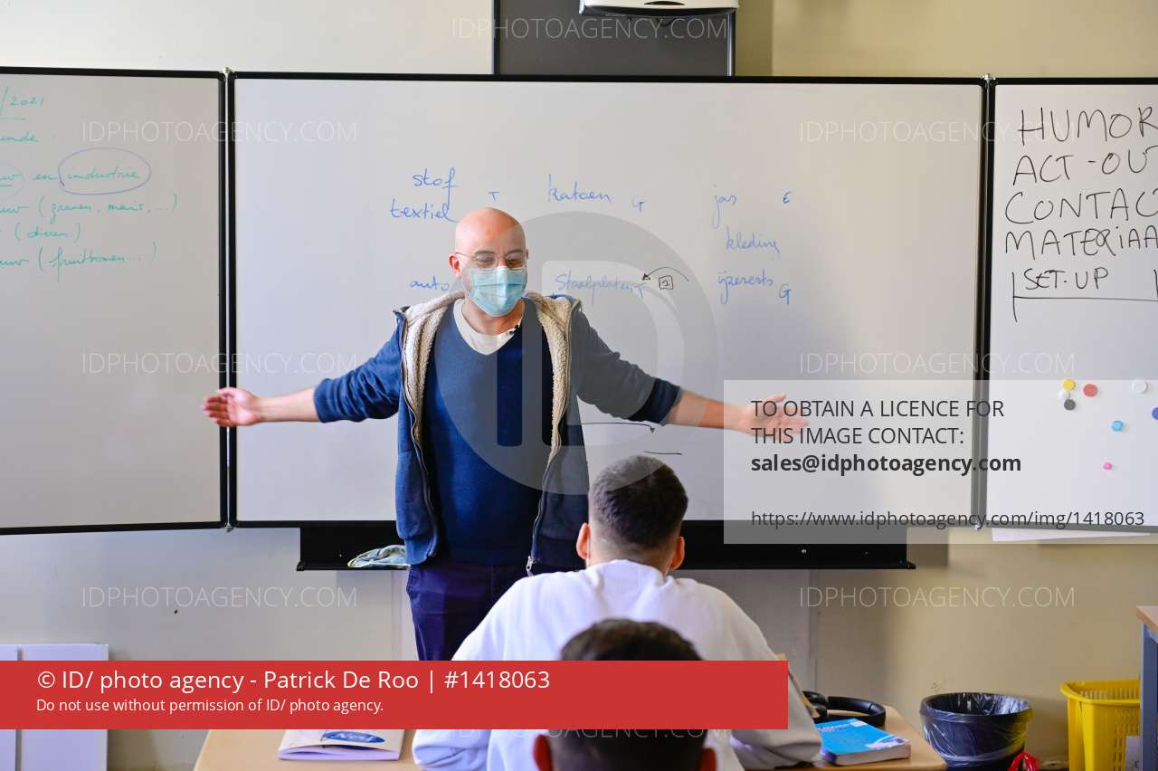 20210305 Anterpen - De OKAN-leerlingen van het stedelijk lyceum Offerande krijgen twee nieuwe leerkrachten voor de klas in de vorm van comedians Arbi El Ayachi en Latif Ait Ahmed. De les Nederlands wordt de les "hoe word ik stand-upcomedian". Arbi en Latif geven de lessen in het kader van het Mad GOAT Comedy Festival.