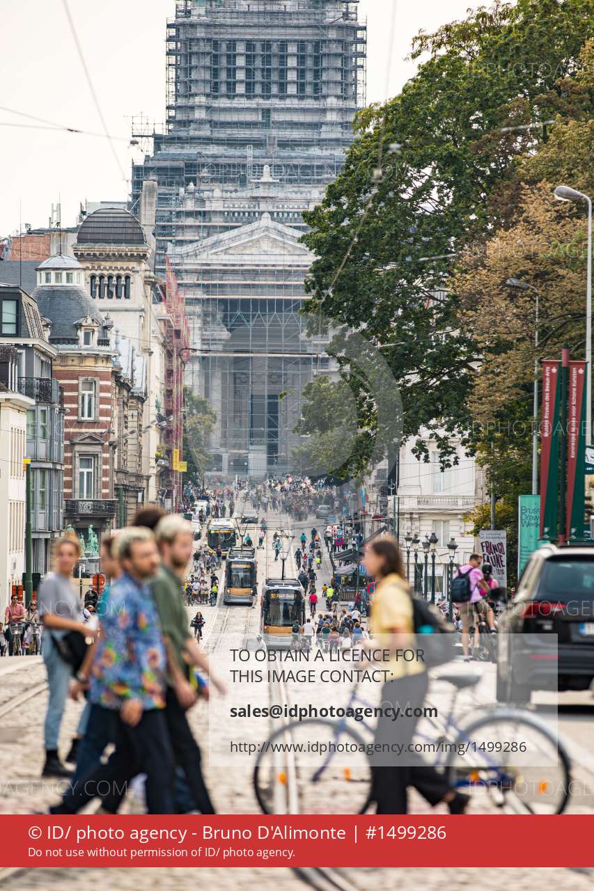 Bruxelles Belgium : la journee sans voiture est un moment particulier qui celebre le velo et la mobilité douce à Bruxelles. Illustration depuis la royale avec vue du bld de la régence et du palais de justice