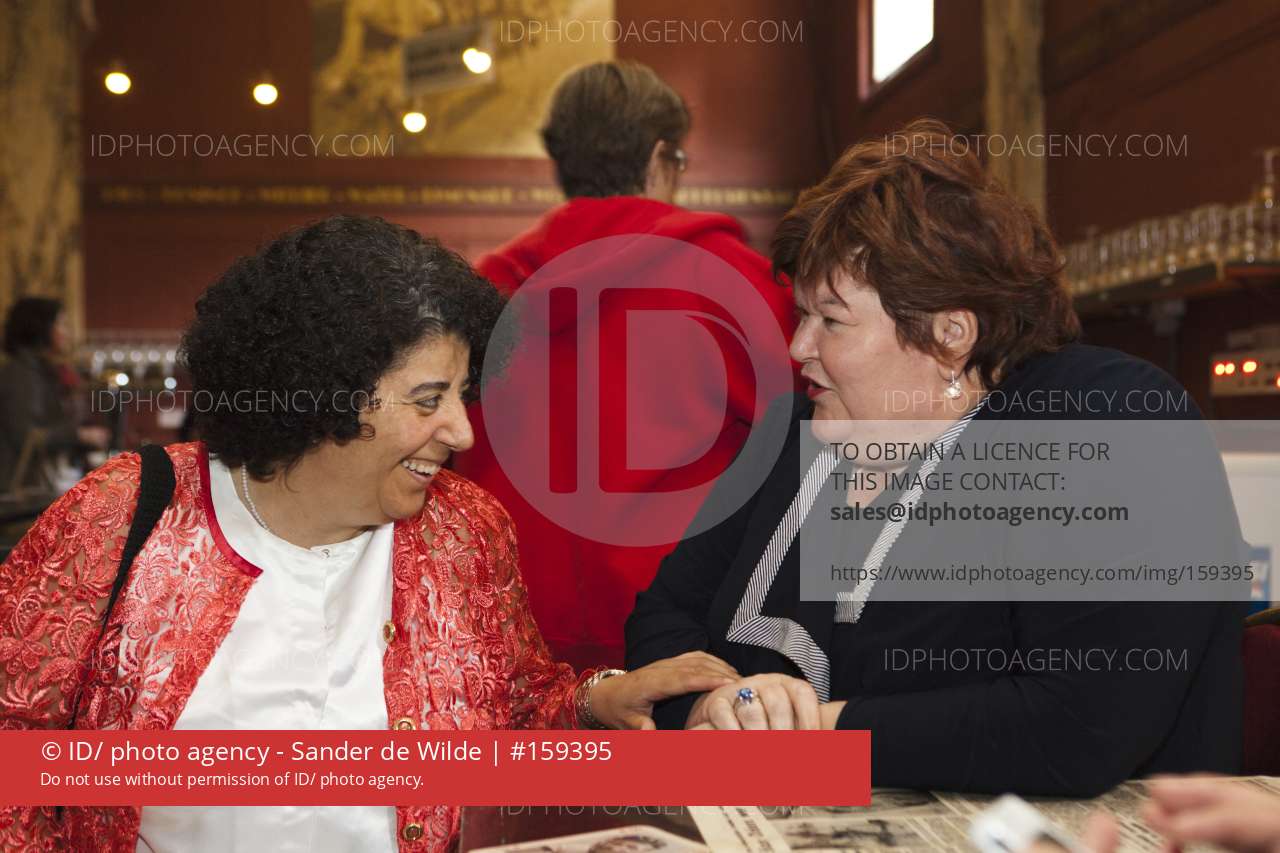 in zaal Roma in Borgerhout. Hier spreekt ze persoonlijk met Fatima Bali van vzw El Moustaqbal