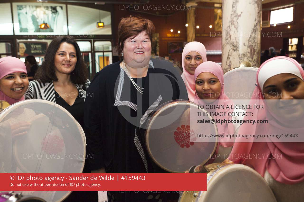 • staatssecretaris voor Asiel en Migratie Maggie De Block met muziekgroep Noor, spreekt in de roma voor Islamitische vrouwen over trouwen.Geflankeerd door dames van muziekgroep Noor, en Nahima Lunjri cd&v