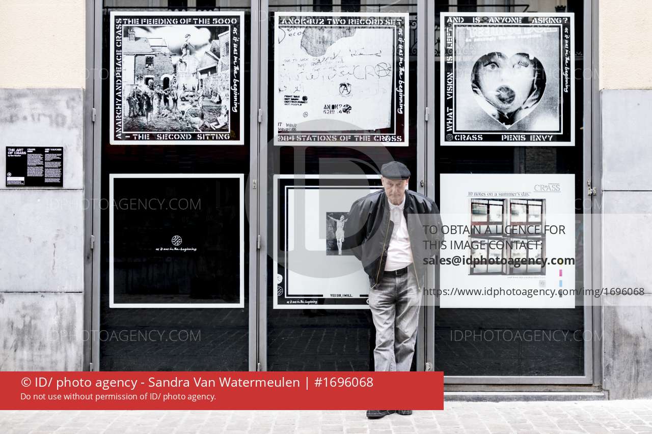 Blow ups van Crass albums hangen naast AB in de Steenstraat.
