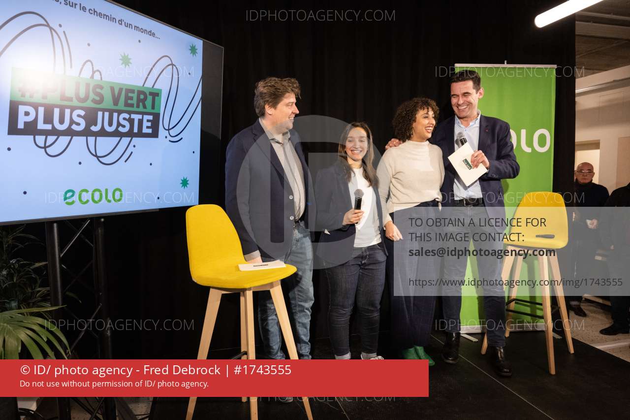 2023/01/16. Brussel. De nieuwjaarsreceptie van de Waals, brusselse partij Ecolo. Co-voorzitters Rajae Maouane en Jean-Marc Nollet speechen het nieuwe jaar in. Ministers Alain Maron, Georges Gilkinet, Zakia Khattabi en Sarah Schlitz zijn onder andere aanwezig.