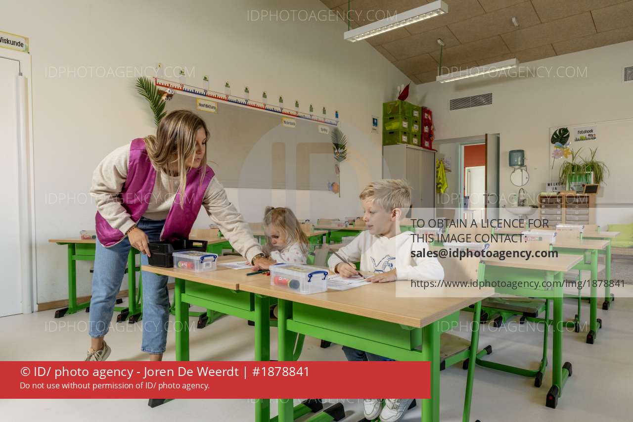 Leerkrachten Jolien Spinnoy en Tim Bouwens geven beide les op de basisschool in Duffel en starten nu 1 september naast elkaar in de klas-kindjes Lenne en Mil zitten in dezelfde school-foto joren de weerdt