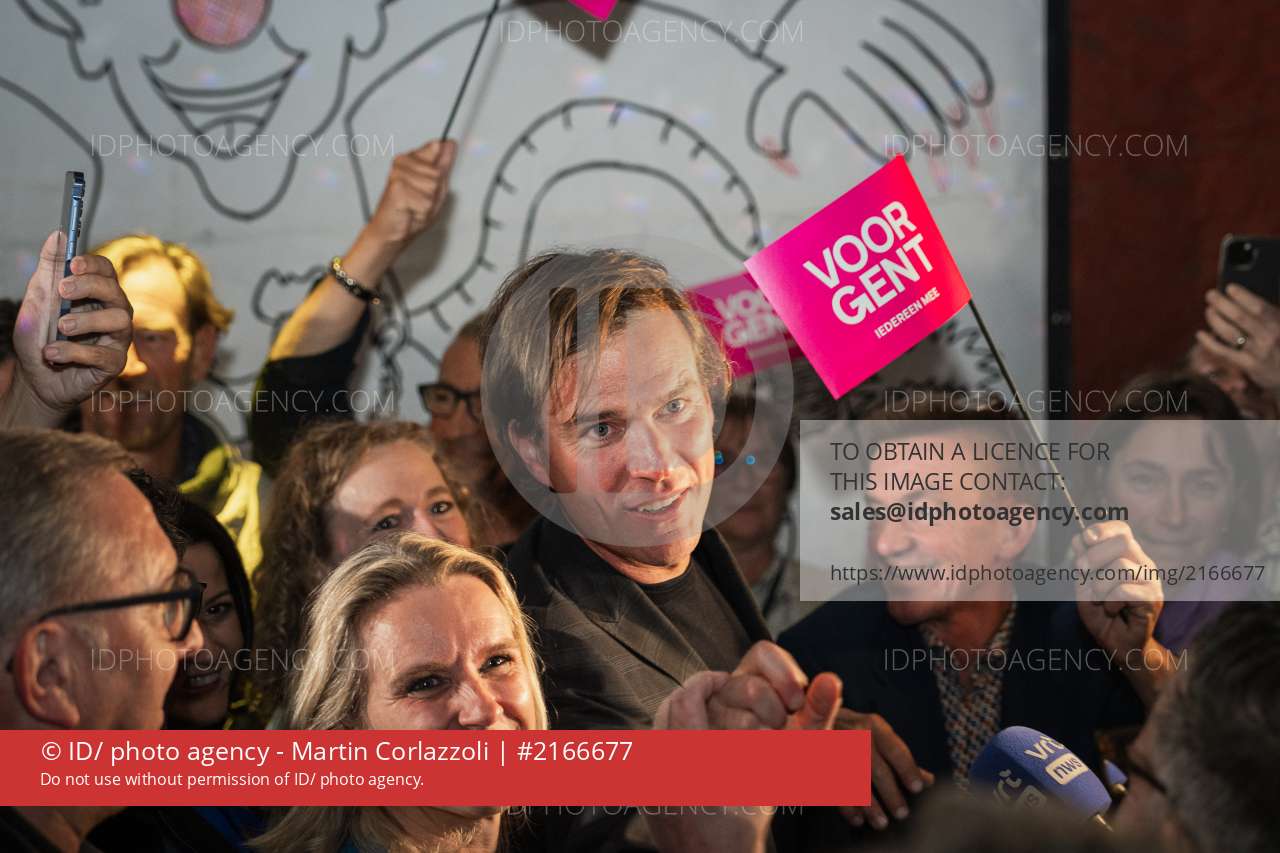 Gemeenteraadsverkiezingen in Gent 13/10/2024. Mathias De Clercq en Voor Gent claimen de overinning in de Charlatan. Anneleen Van Bossuyt (NVA) blij met winst