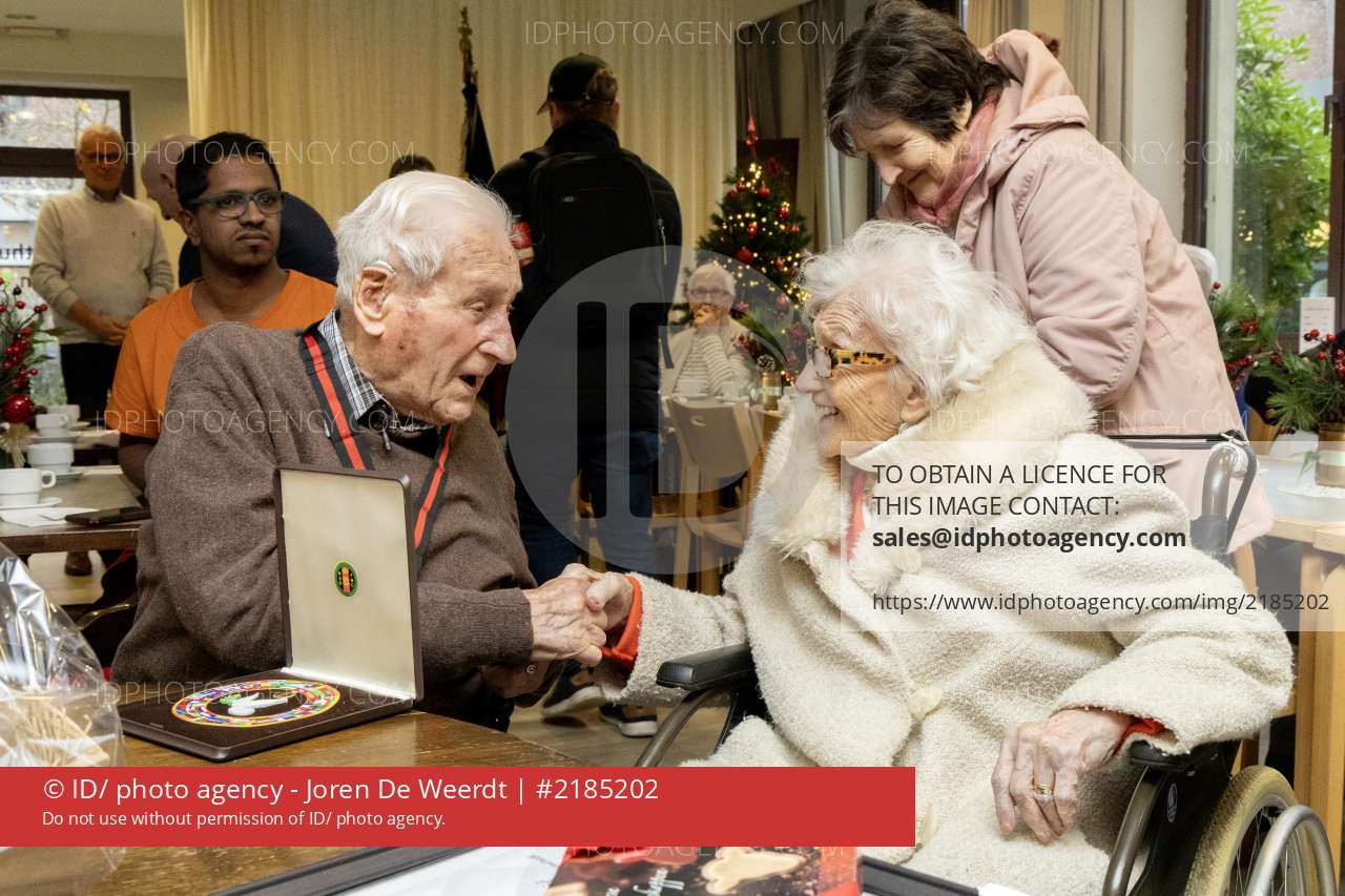 huldiging van JOS KETS oudste man van België-wonend in Berlaar in rusthuis-ontmoeting met Denise Waelbers, de oudste vrouw van België 109 jaar-foto joren de weerdt