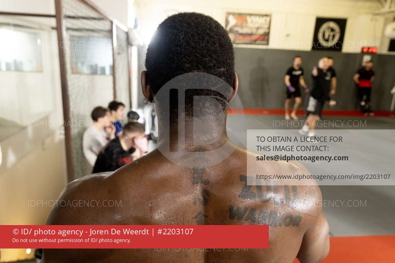 training van MMA-vechter Oki Bolaji aka The Zulu Warrior in de Da Vinci Gym in Evere-Oki is de enigste Belgische cagefighter in de MMA leage-foto joren de weerdt