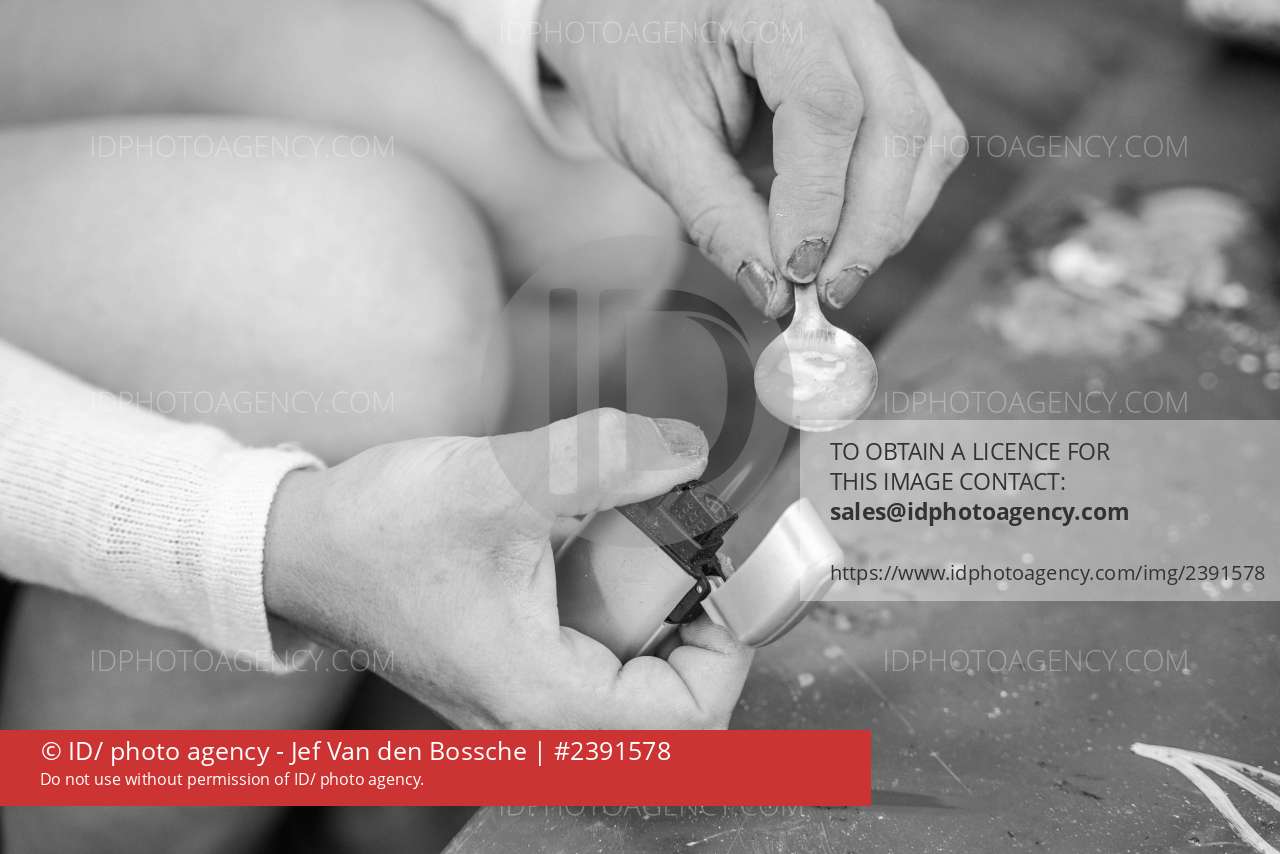 Base cocaine is heated on a spoon near Luxembourg’s central train station. The drug, chemically close to crack, has been gaining ground again in cities worldwide, particularly in areas marked by insecurity and street-level poverty.