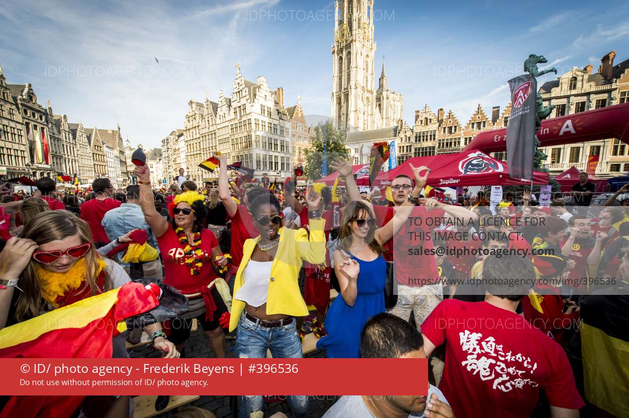 Rode Duivels winnen van Rusland sfeerbeelden van 15h30 tot na de match. Grote markt, eilandje, waagnatie, dageraadplaats, grote markt, turnhoutsebaan