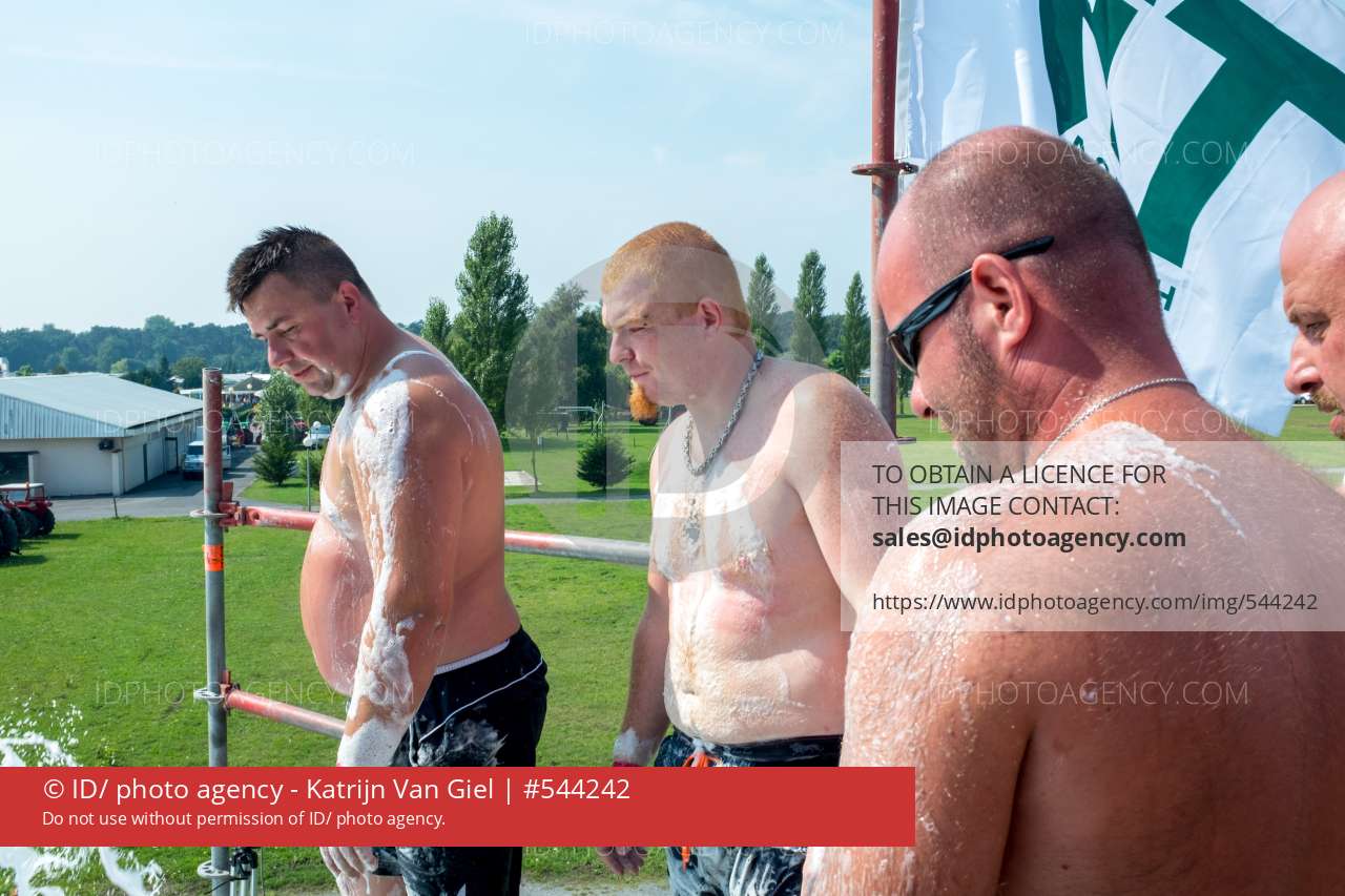 2015/08/30, Steken, EK Builschuiven. Foto's katrijn van giel. Foto 6 bij verhaal. ' buikschuiven is de mooiste sport ter wereld' schelt uit de boxen' heel het jaar door op gewicht blijven met liters Duvel en friet' elke kilo aan lichaamsgewicht is een meter verder schuiven. '