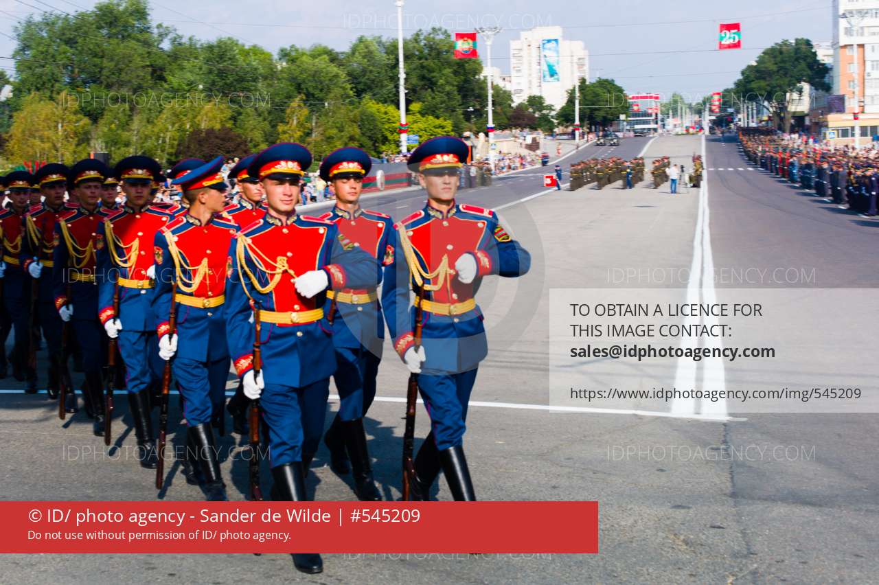 20150831 Moldova, Transnistria,Pridnestrovian Moldavian Republic (PMR) Tiraspol. Rehersal for the big parade, in the 25th Transnistrian independance day when they had a war separating from Moldova.The elite corps marches crossing the 25th of october street, during rehearsals.