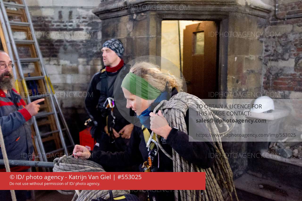 20150923, Antwerpen, Tussen klokken en wolken samen met de dienst monumenten zorg. foto's katrijn van giel. Foto 3 bij verhaal. 'De kathedraal is de parel van Antwerpen' zegt Krista terwijl ze haar touwen bijeen zoekt. ' ik heb haar al ontelbare keren onderzocht, en zo heb ik met haar een intieme band.