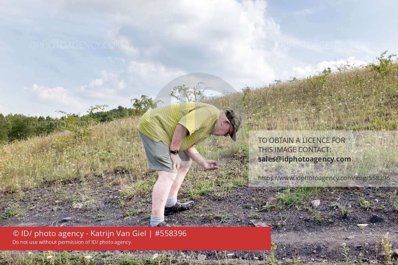 20150805, Genk, foto's katrijn van giel. Jan onderzoekt de mijn terril in Nieuw-Sledderlo. Heel zijn leven draait rond de mijn. Toen hij 14 jaar was kwam hij hier 's nachts gewapend met een zaklamp en een grote dosis durf kolen rapen.