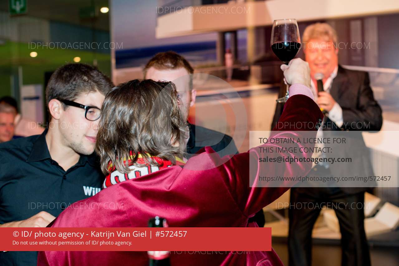 20151108, Oostende, KV Oostende speelt tegen oud heverlee Leuven. Kv Oostende is de ploeg van marc coucke. Marc Coucke toost op schlager zanger Garry Hagger.