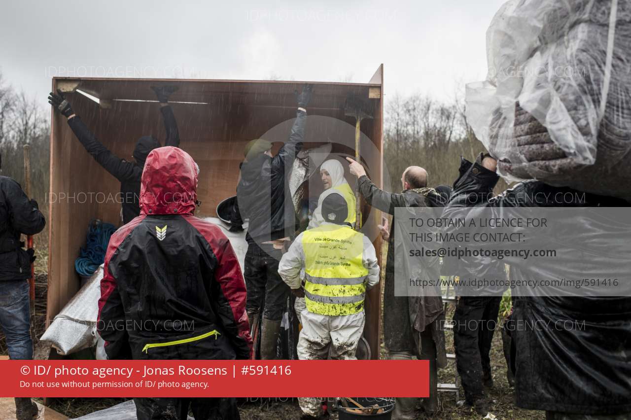 20160111, Dunkerque, France. Illustration image made in the refugee camp of La Grande Synthe in Dunquerke - Duinkerke, on a day when volunteers were allowed in to the camp to assist in making it a more humane environment for its inhabitants. The heavy rains over the past few days have transformed the site into a swamp.