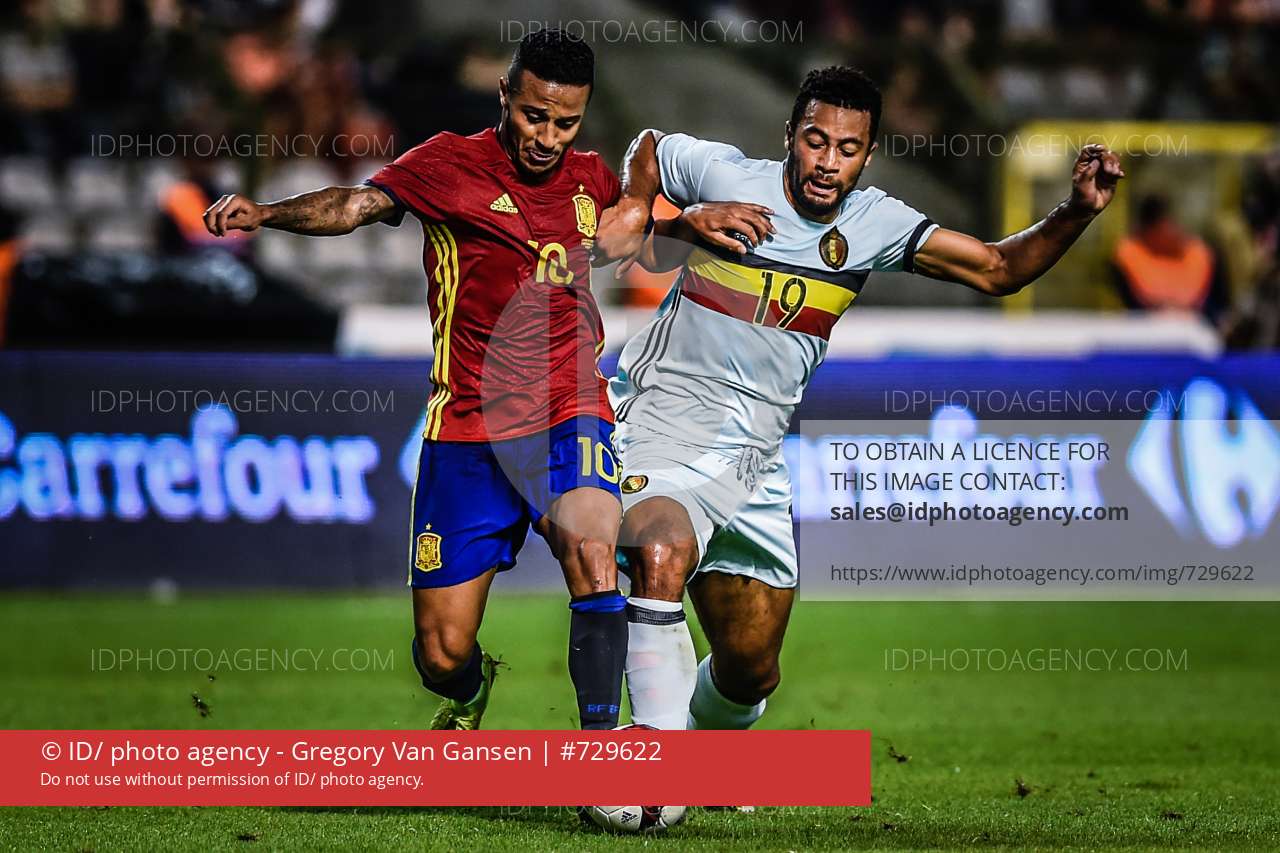 BRUSSELS, BELGIUM, SEPTEMBER 1: Thiago and Moussa Dembele pictured during the friendly match between Belgian national soccer team Red Devils and Spain, on Thursday 01 September 2016, in the King Baudouin Stadium, in Brussels.