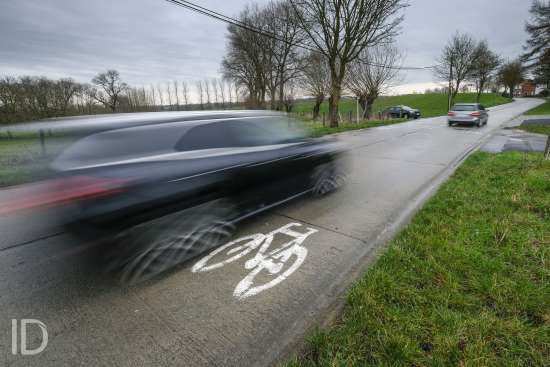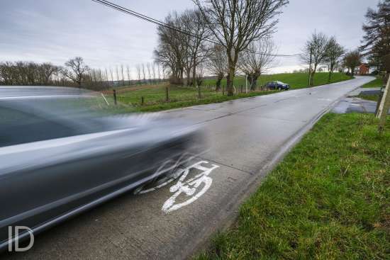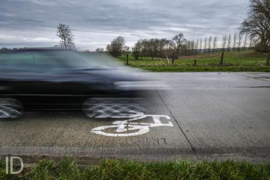 Brakel, 6/03/2019. De Lepelstraat tussen Michelbeke en Elst is uiterst gevaarlijk voor fietsers. Ze heeft zelfs geen moordstrook, de automobilisten worden enkel gewaarschuwd door middel van witgeschilderde afbeeldingen van fietsen op het wegdek.