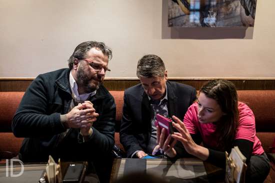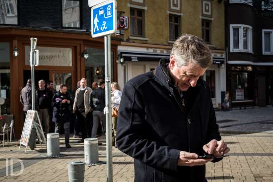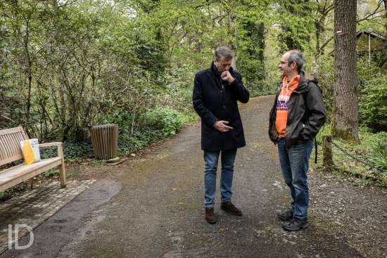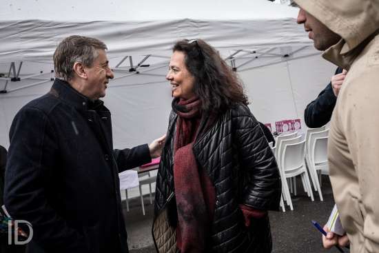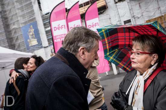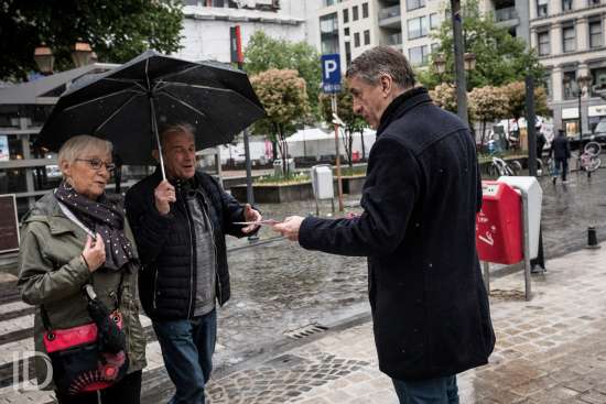 Liège, Belgique. 27 Avril 2019. Rencontre avec les citoyens liégeois pour Olivier Maingain accompagnés de candidats régionaux.??Liège, Belgium. April 27, 2019. Meeting with the citizens of Liège for Olivier Maingain accompanied by regional candidates.