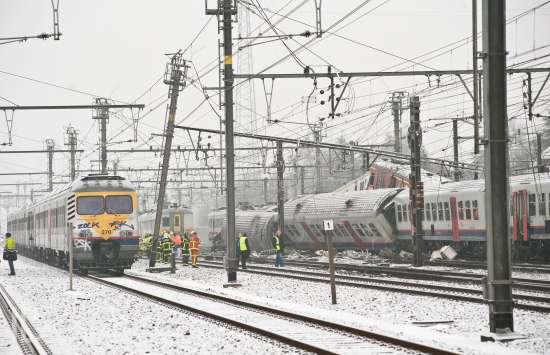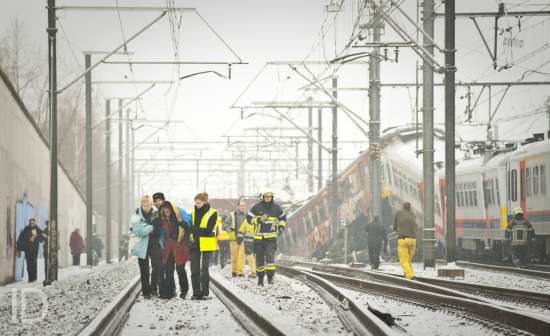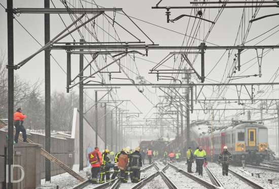 20100215 Buizingen Belgie: hulpdiensten aan het werk bij de treinramp in Buizingen. Copyright Bart Dewaele