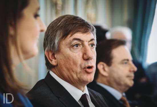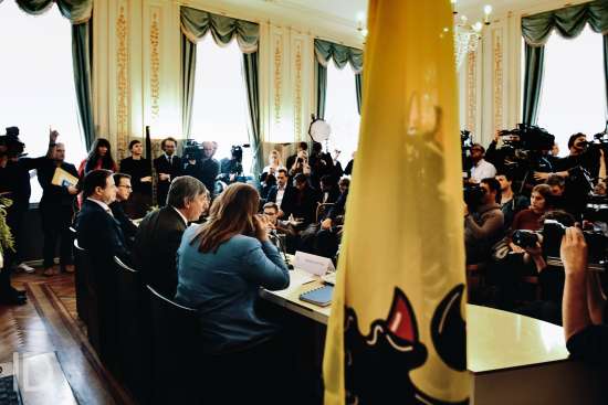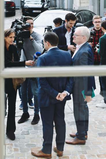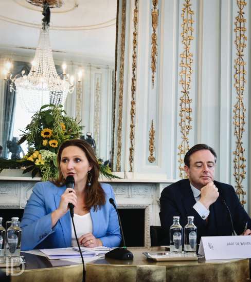 20190930 Brussel Belgie: persconferentie met voorstelling van het Vlaams regeerakkoord van Jambon 1: Gwendolyn Rutten, Jan Jambon, Bart De Wever en Wouter Beke. Copyright Bart Dewaele