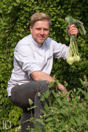 Fotoreportage: 493695 Dodoensreportage voor Citta - in restaurant chef Seppe Nobels. Dit keer gaat het over salie en Koolrabi. 1. Graag een beeld van de groente en het kruid apart, 2. een beeld van het gerecht dat Seppe ermee heeft bereid. 3. Eventueel enkele stappen van de bereiding, 4. een beeld van Seppe met beide in zijn handen en (. een beeld van Seppe met het klaargemaakt gerecht. Straat: Graanmarkt 13 Gemeente: Antwerpen
