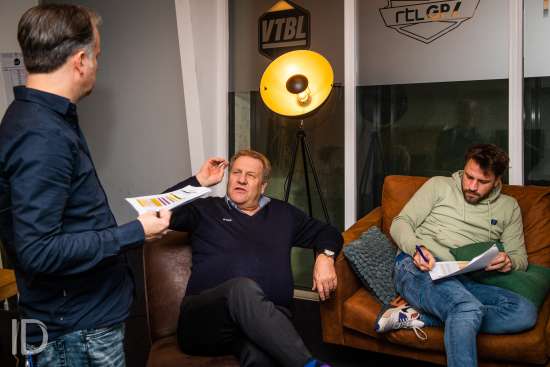 Johan Boskamp in de studio van RTL .Met boskamp naar Hiversum.