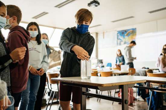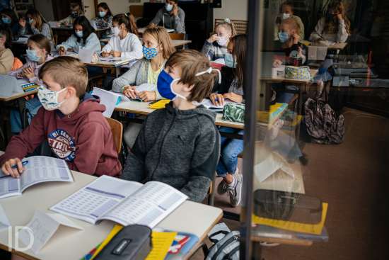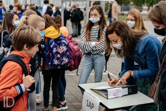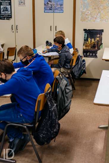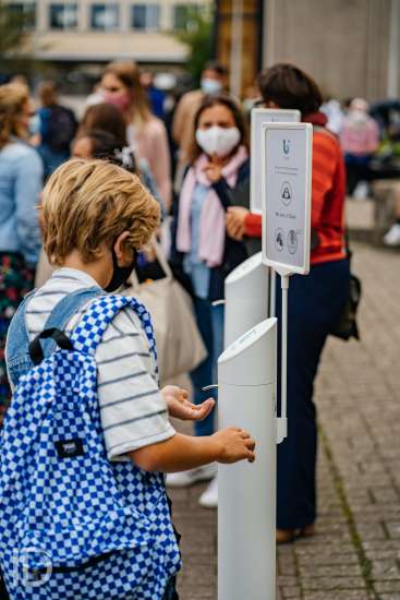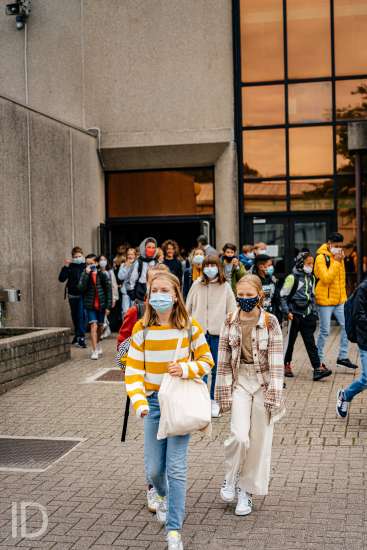 01092020 WVV GENT BELGIE Voskeslaan 1 september op de Middenschool Voskeslaan in Gent. Enkel de eerstejaars worden veracht in de voormiddag en krijgen zo alle tijd en ruimte om de school te ontdekken.