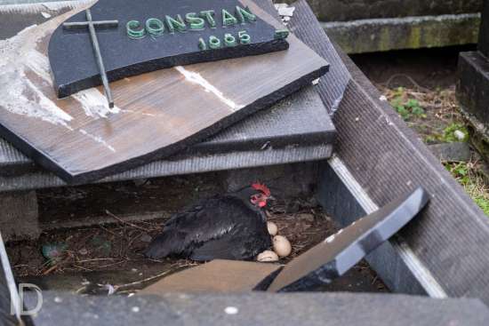 broedende kip op het kerkhof van merksem en andere dieren zoals konijnen