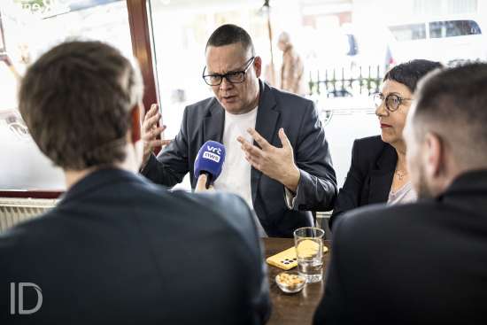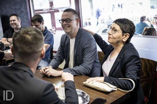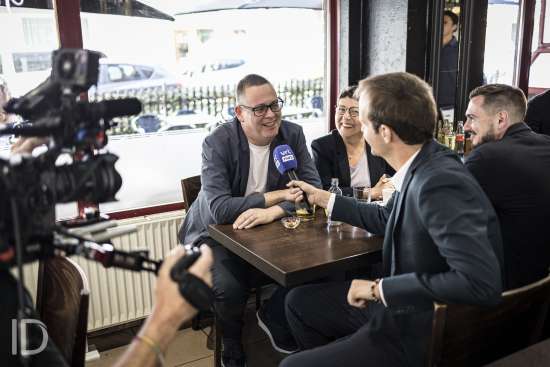20240609 Liege Belgique: Raoul Hedebouw lijsttrekker van PVDA gaat stemmen in Luik en spreekt nadien af met vrienden. 20240609 Liege Belgique: Raoul Hedebouw lijsttrekker van PVDA gaat stemmen in Luik en spreekt nadien af met vrienden.
