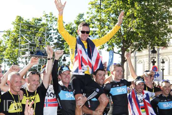 PARIS / CYCLING / WIELRENNEN / CYCLISME / TOUR DE FRANCE / RONDE VAN FRANKRIJK / TDF / LE TOUR / ARRIVEE / ETAPE 20 / SATGE 20 / FINISH / AANKOMST / RAMBOUILLET - PARIS CHAMPS ELYSEES / 120 KM / BRADLEY WIGGINS / MARK CAVENDISH /