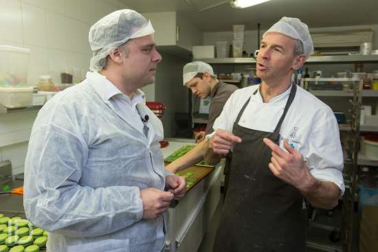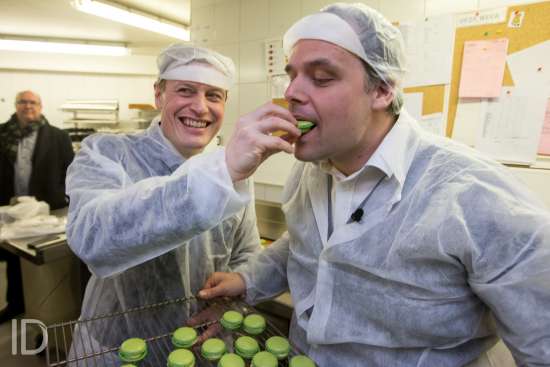 Fotoreportage: 489948 Persconferentie Flexijobs Flexijobs , bijverdienen bovenop een gewone job kunnen nu alleen in de horeca. Staatssecretaris Philippe De Backer en Unizo-topman Karel Van Eetvelt willen dat ook mogelijk maken bij slagers en bakkers foto bij bakker Pattisserie Del Rey. Straat: Appelmansstraat 5 Gemeente: Antwerpen