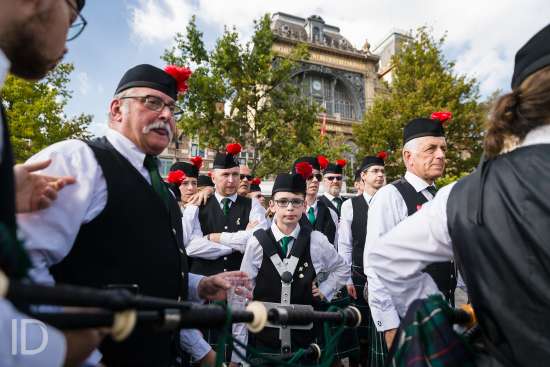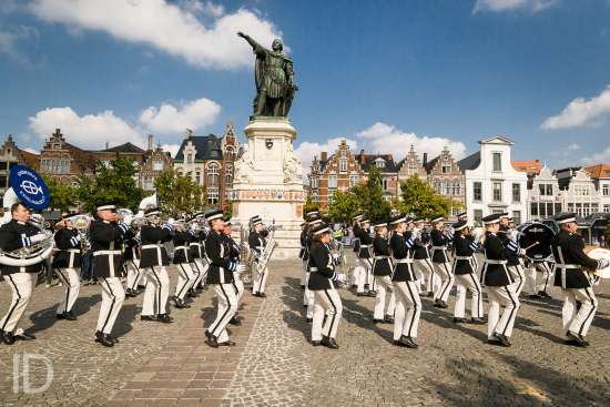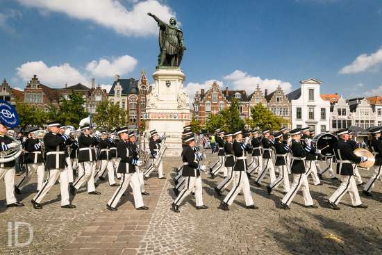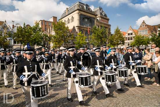 20170923 Gent België: Arteveldetaptoe, fanfare op en rond de Vrijdagmarkt.